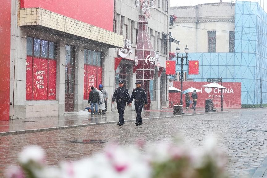共工新闻社10月25日电(朱善永 华钧松)为有效应对雨雪天气,哈尔滨市公安局道外分局全力做好巡逻防控、应急处置、服务救助等工作,用“辛苦指数”换取群众“安全指数”,倾力营造安全有序的辖区治安环境。